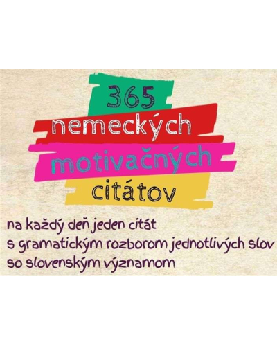 365 nemeckých motivačných citátov je unikátnym sprievodcom k výnimočnému jazykovému rozvoju a osobnému rastu. Priprav sa na úžasnú cestu, počas ktorej budeš postupne získavať silné základy nemeckého jazyka. Taktiež sa bude formovať tvoje sebavedomie a osobnosť. Denne tu budeš nachádzať dávku motivácie na úspech. Nečakaj, začni svoju púť dnes a otvor sa novým možnostiam.