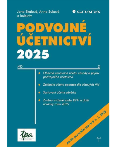 Okrajově se také budeme věnovat schváleným novelám v oblasti daní se změnami účinnými od 1. 1. 2025, a to zejména změnám v oblasti DPH. Dále se zaměřujeme na možnost zpětného uplatnění daňové ztráty či pravidla pro výplatu vlastního kapitálu dle zákona o obchodních korporacích. Výklad začíná obecně uznávanými účetními zásadami, podrobně jsou rozebrány základní stavební prvky podvojného účetnictví. Následuje rozbor účetních příkladů podle účtových tříd, tedy od dlouhodobého hmotného majetku, přes zásoby a pohledávky až ke kapitálovým účtům, nákladům a výnosům. Příklady jsou řešeny účtováním na účty, jsou využita čísla účtů historicky používaná. K nákladům a výnosům jsou připojeny základní daňové souvislosti, např. výpočet daňových odpisů nebo tvorba opravných položek k pohledávkám.